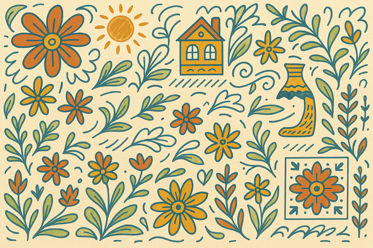 Hand-Painted Indian Ceramic Tea Set – 1 Kettle & 6 Cups | Ethnic Chai Set for Home & Gifting -